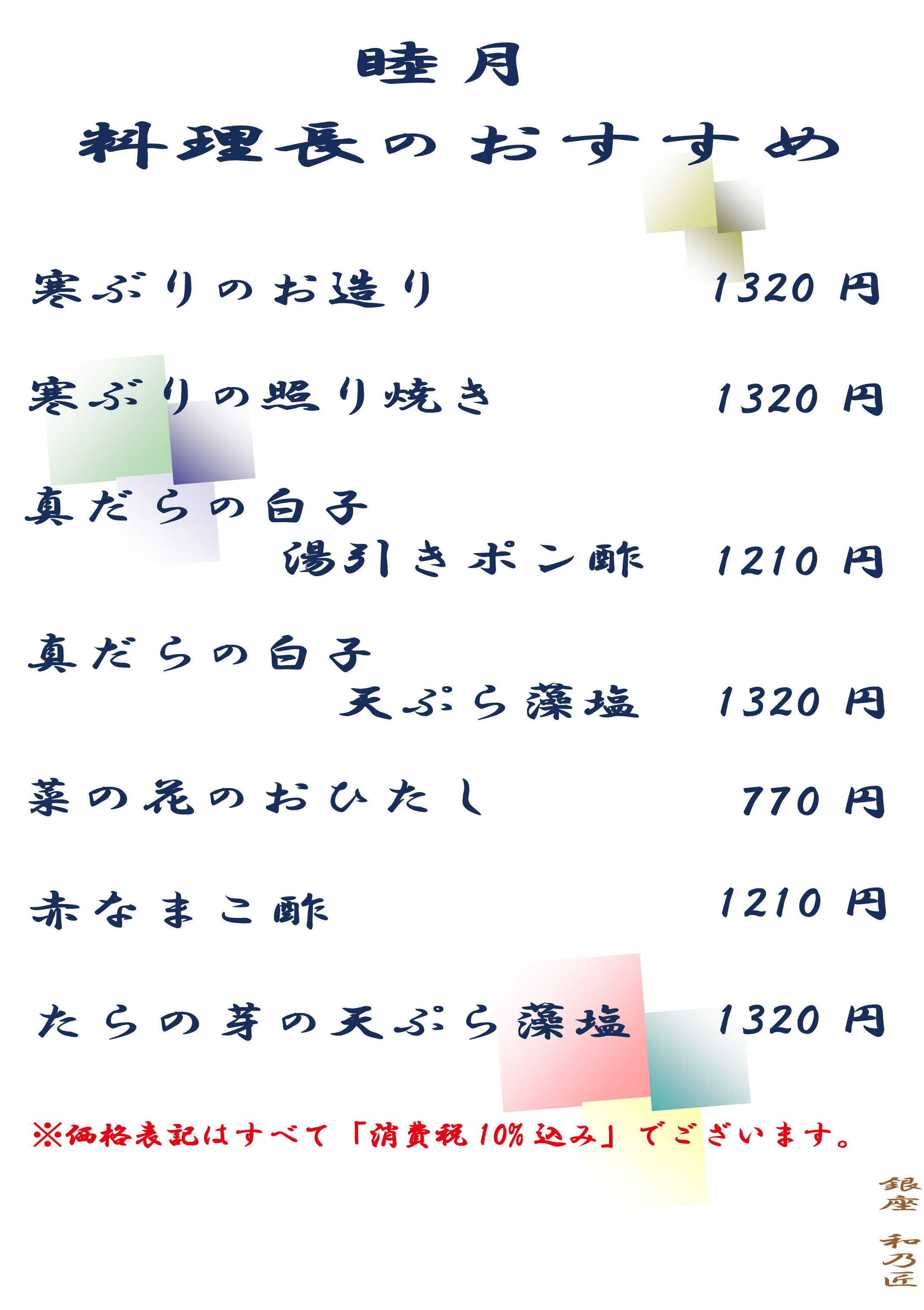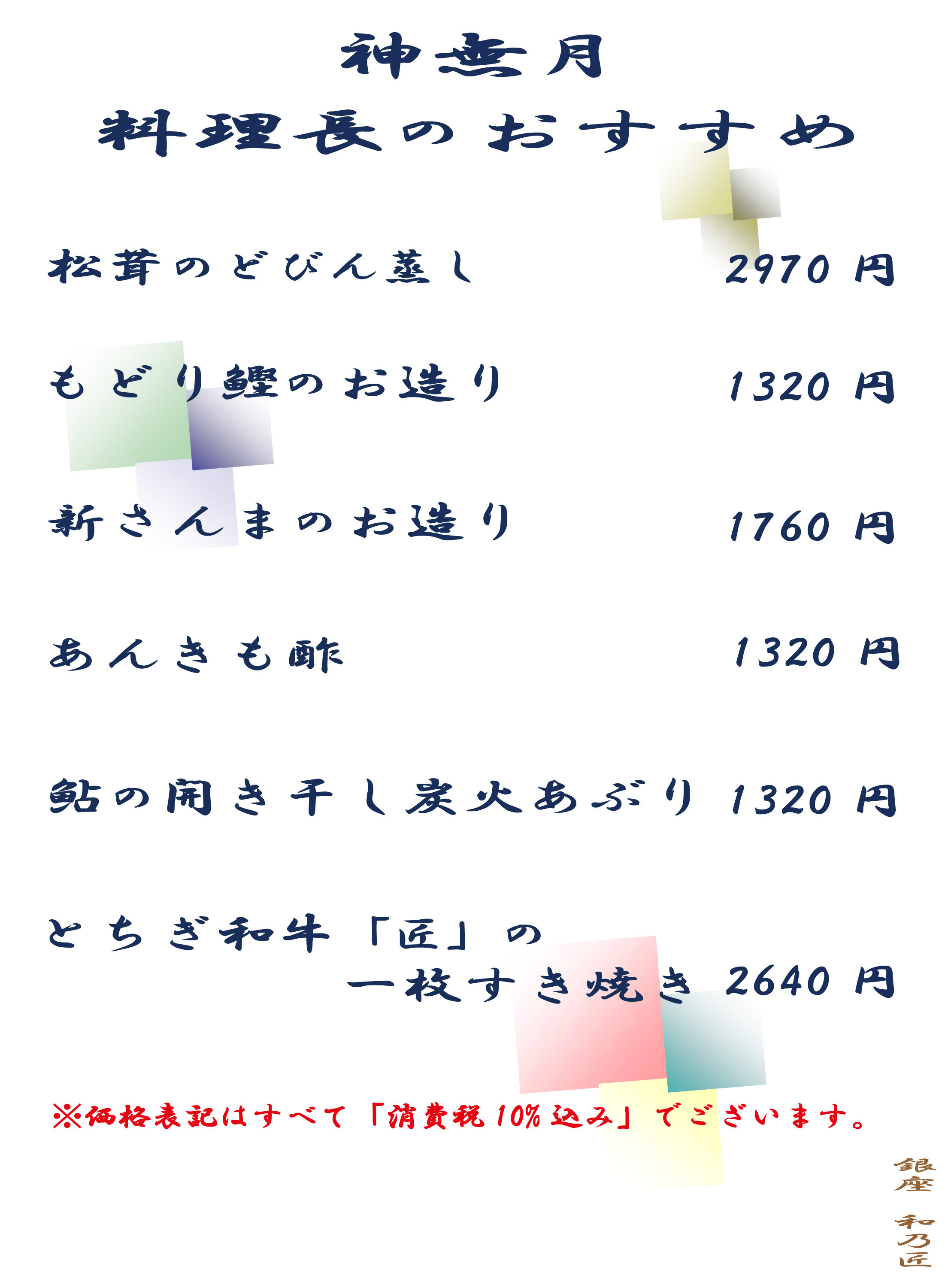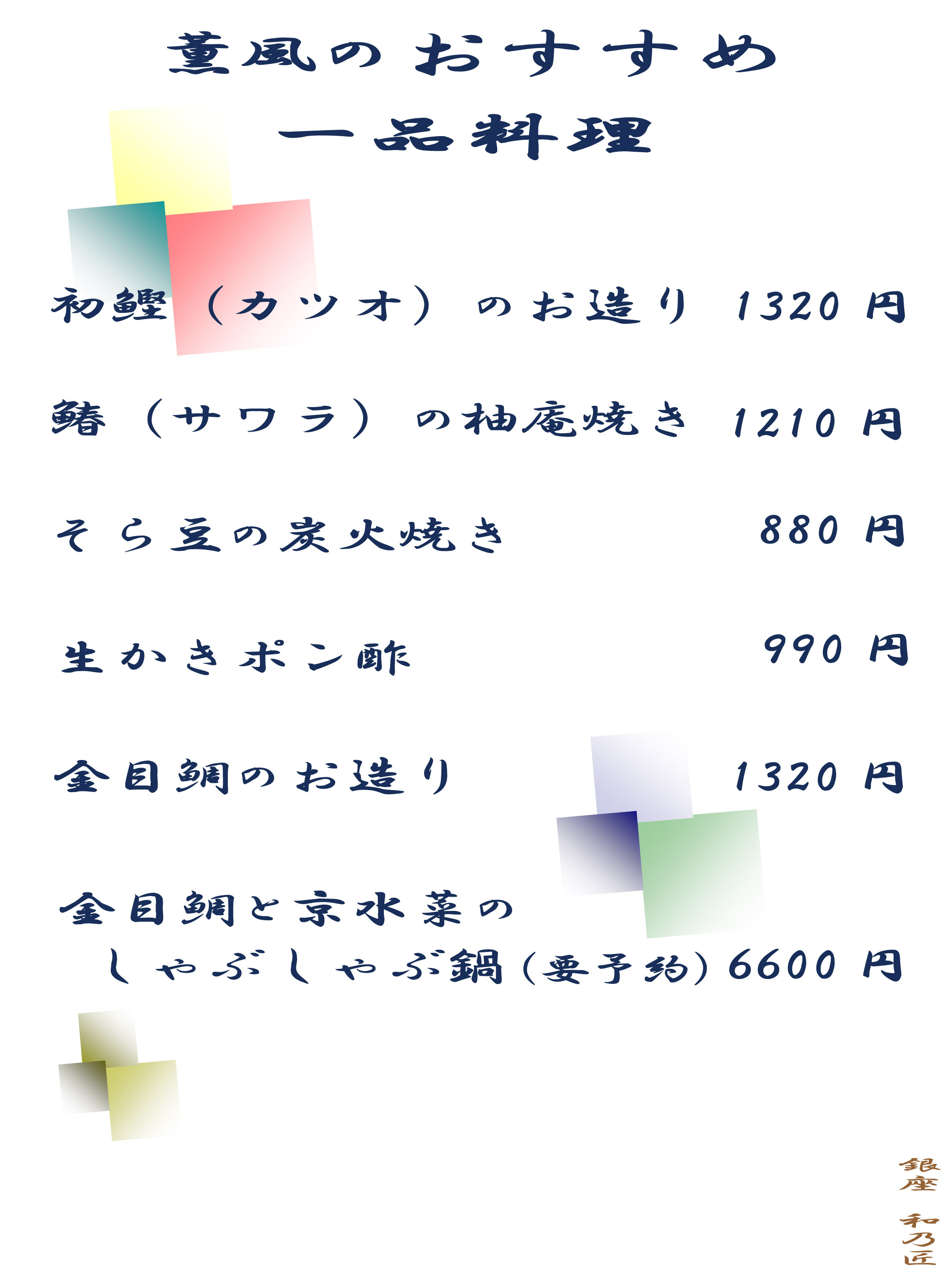 旬の食材を『銀座 和乃匠』が厳選しております。