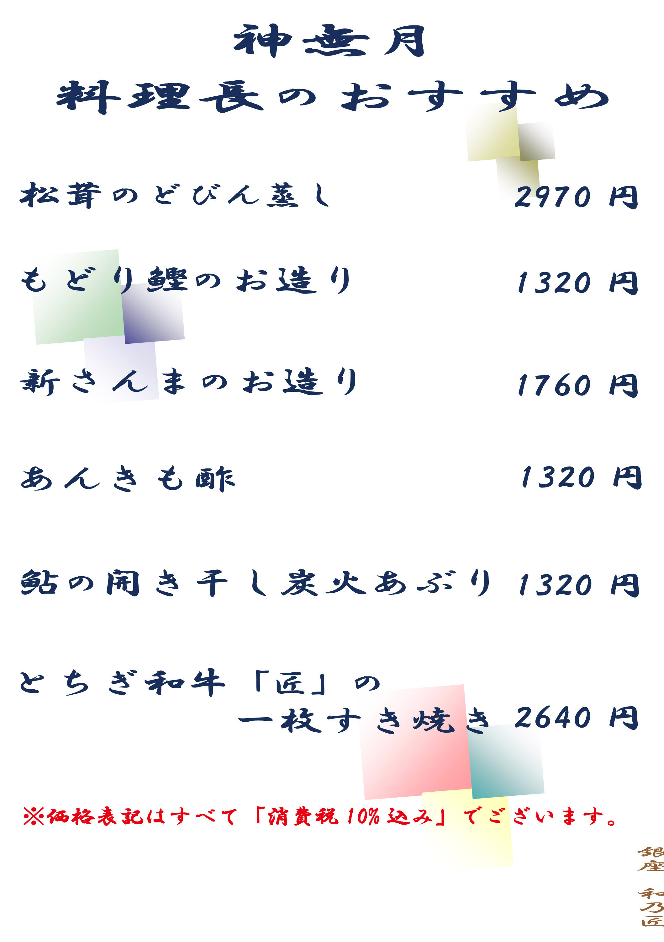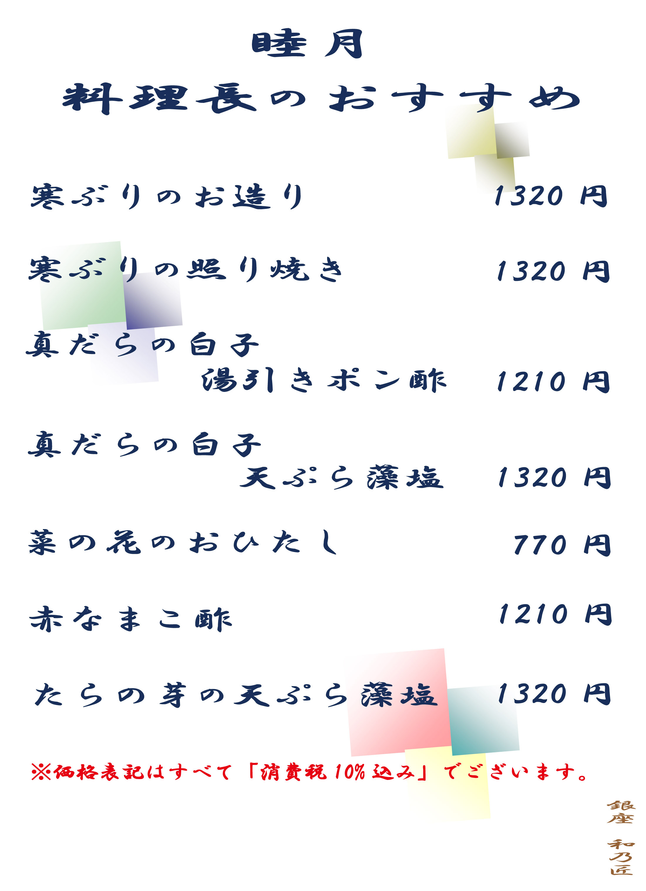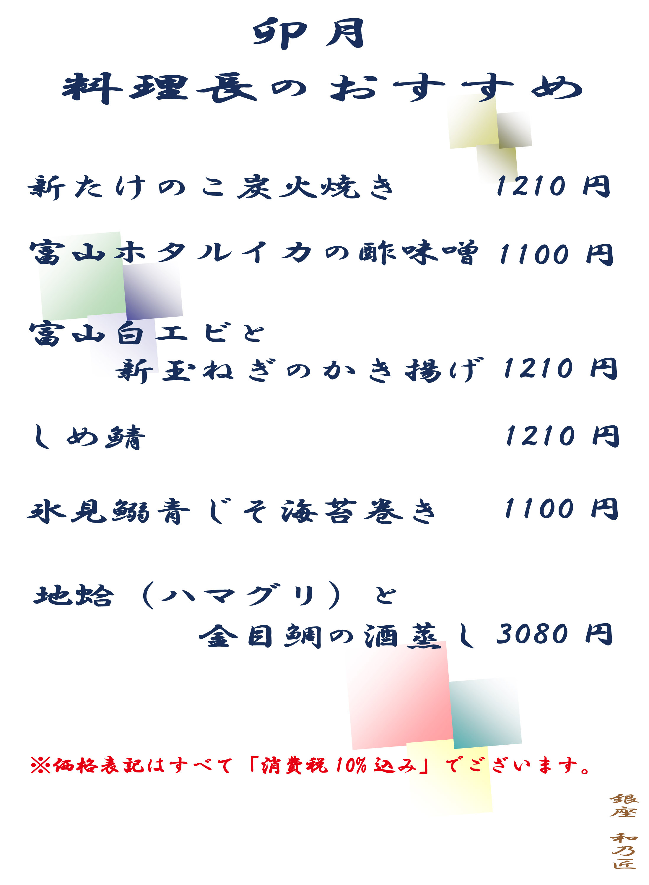 旬の食材を『銀座 和乃匠』が厳選しております。