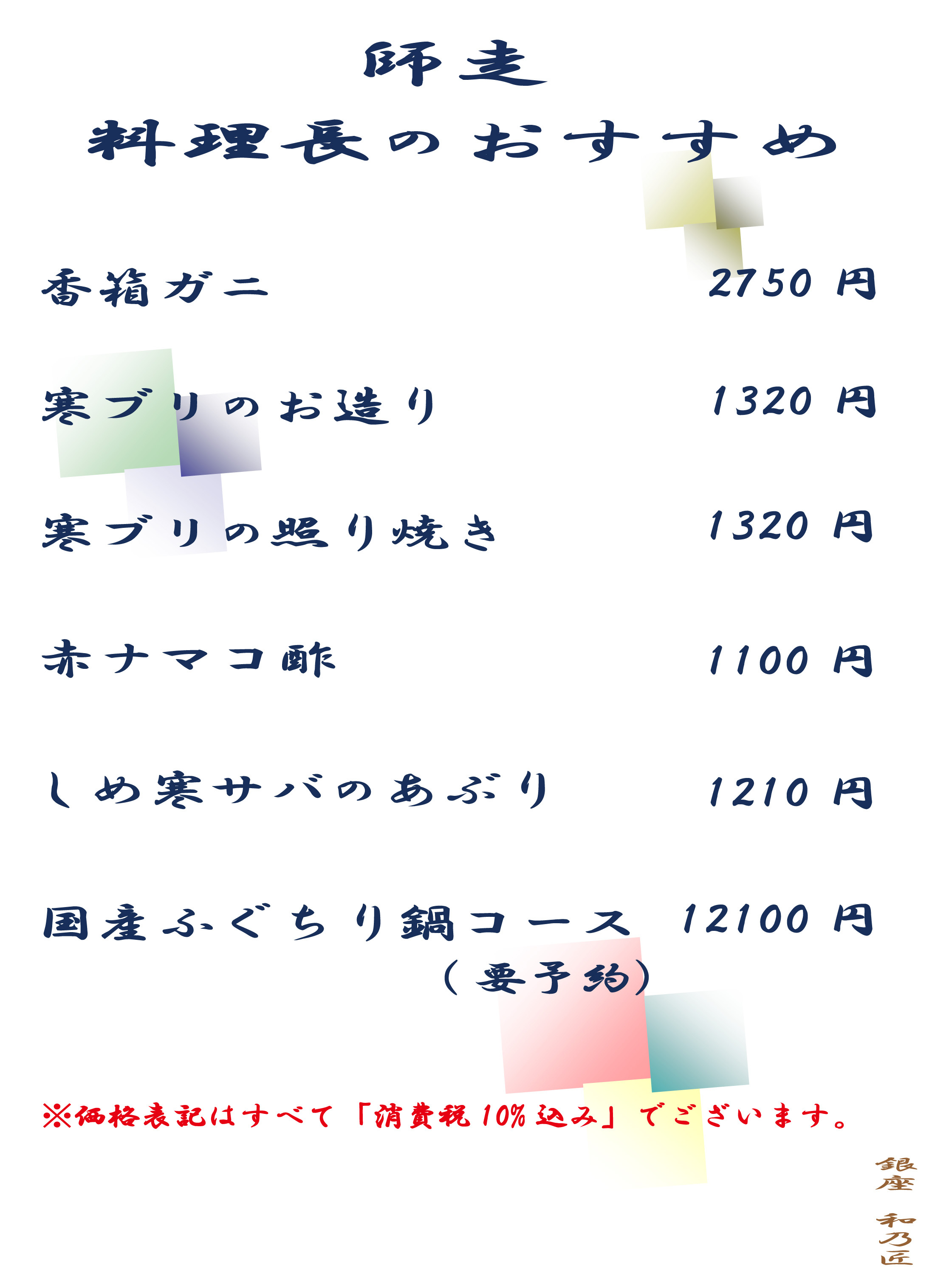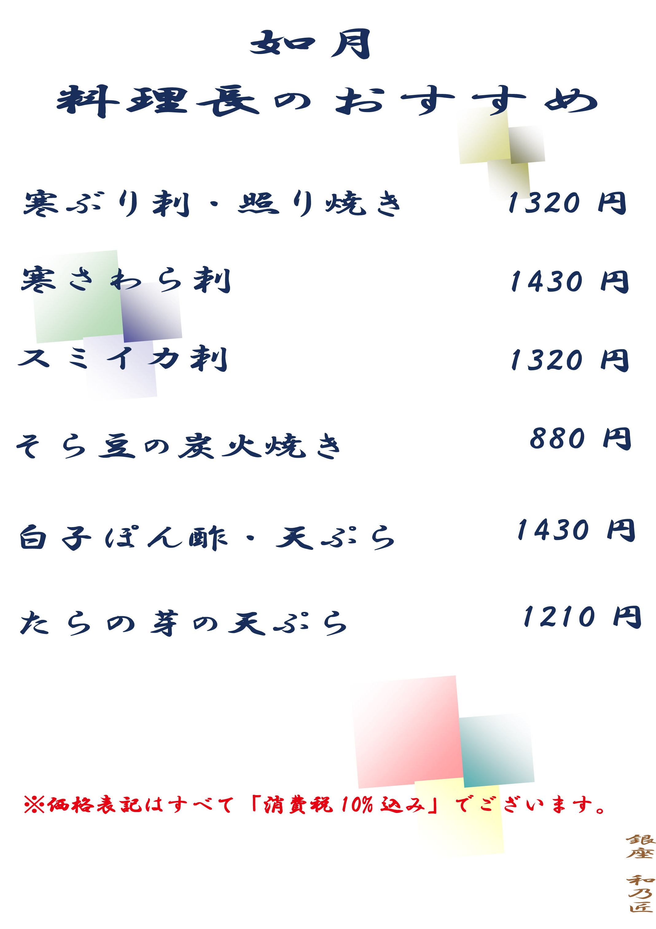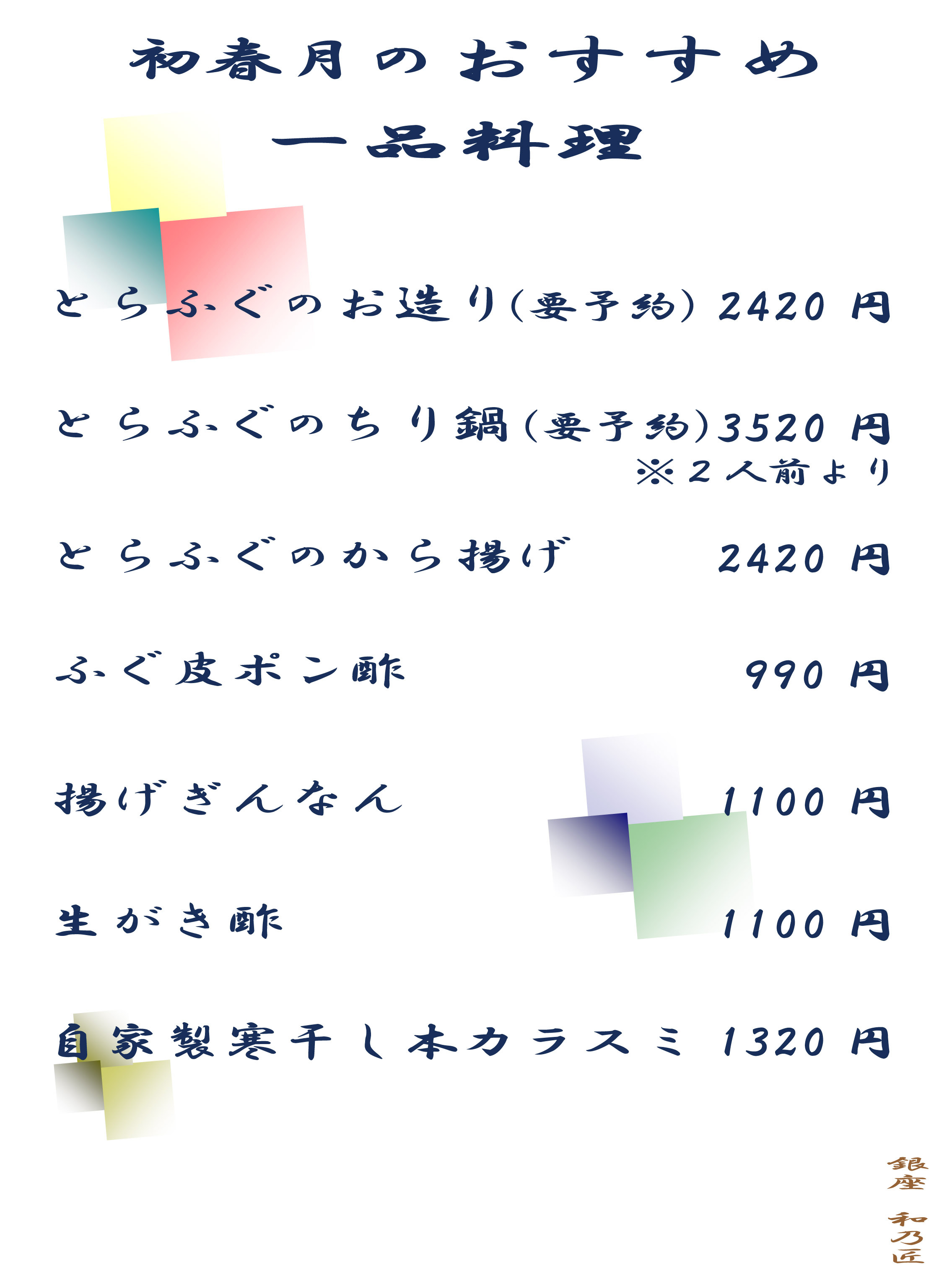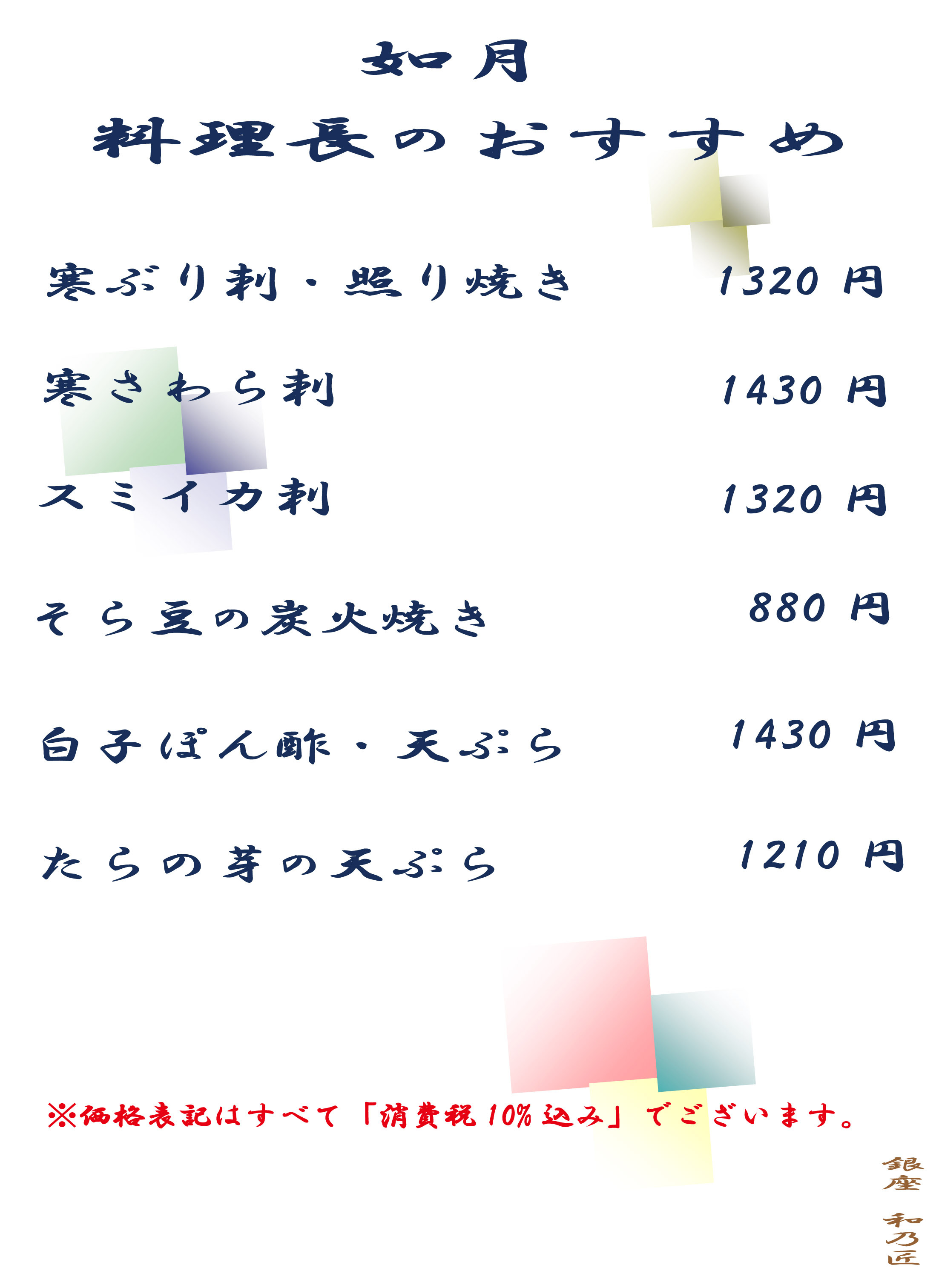 旬の食材を『銀座 和乃匠』が厳選しております。
